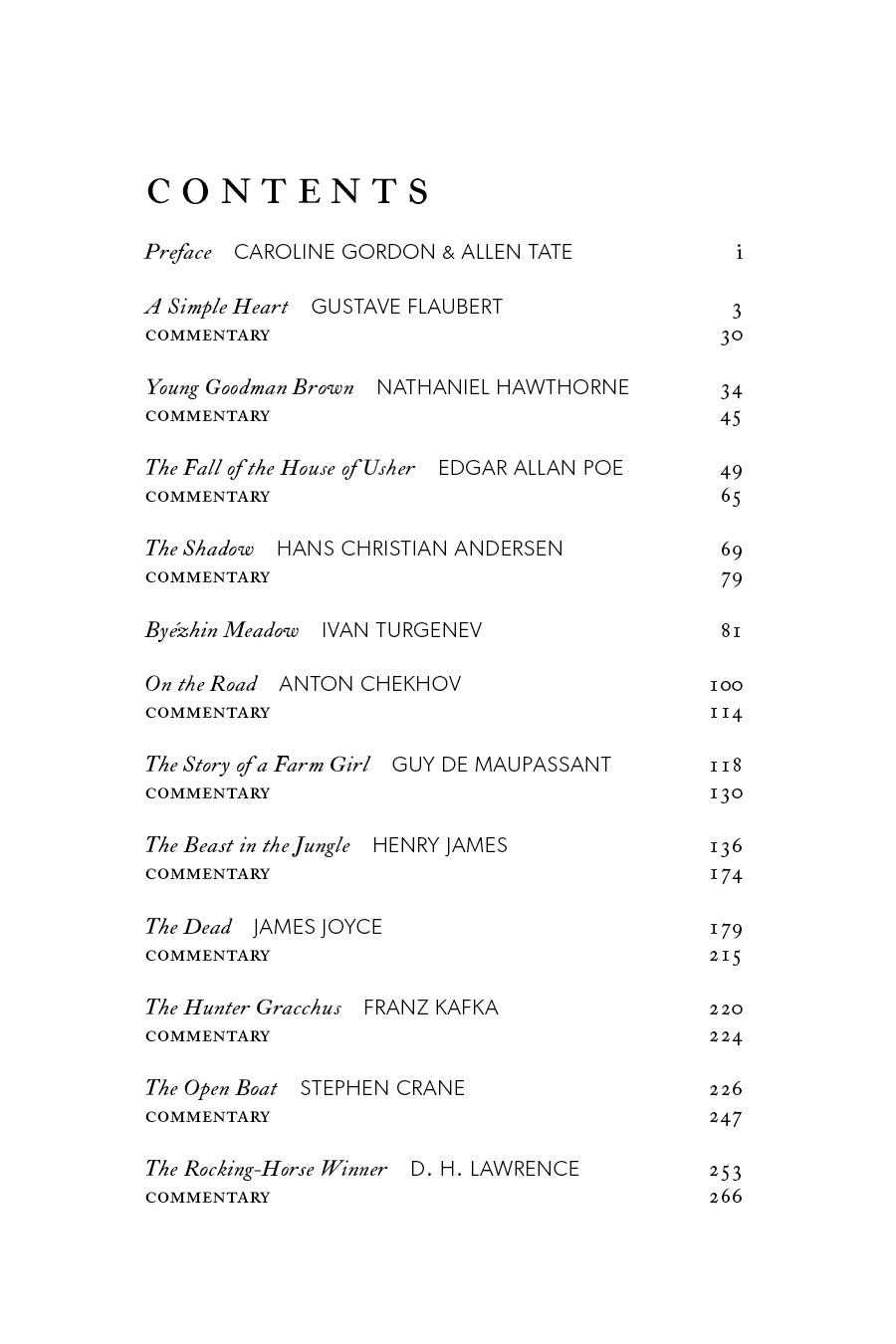 A good work of fiction, Caroline Gordon remarks in How to Read a Novel, is the competent fashioning of a story “out of the intangible, mysterious stuff of life.” The House of Fiction, edited by Gordon and Allen Tate, is an anthology of short stories collected in the effusive light of that principle. Fiction is a craft; as such, they write, it has its “secrets of technique which not only appear in the works of all the masters of the craft but which have been handed down from master to master throughout the ages.” Each of the twenty-three stories in this volume illustrates the various ways that those techniques can be (or ought not to be) employed, in the medium of the short story, in the pursuit of the art’s final end. Most of these stories carry Commentaries to facilitate recognition of those techniques and their effects in a given story. Concluding the anthology is a brilliant Appendix of “Notes on Fictional Techniques,” presenting the basic methods of the craft as well as the main faults of its inexperienced or impetuous practitioners.
