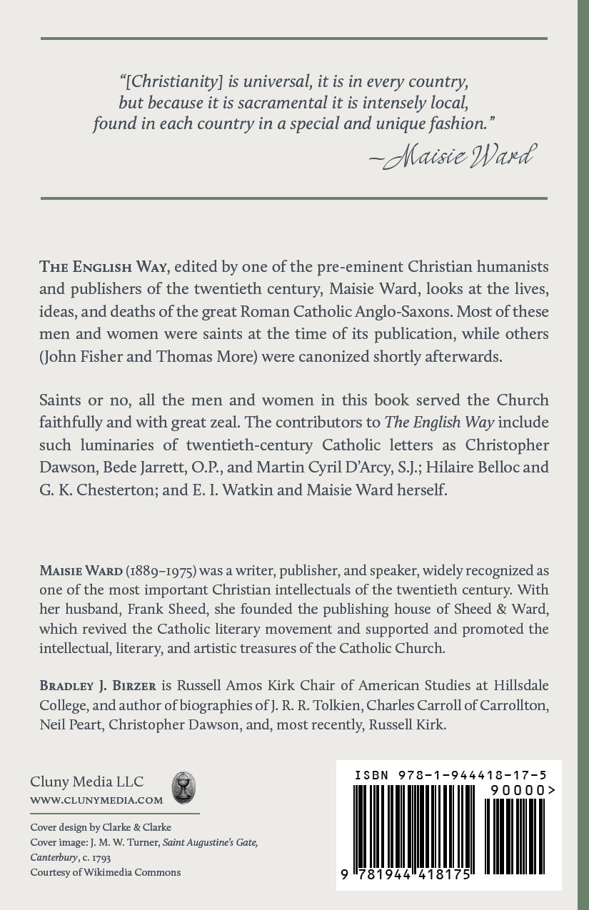 The English Way, edited by one of the most important Christian humanists and publishers of the twentieth century, Maisie Ward, looks at the lives, ideas, and deaths of the great Roman Catholic Anglo-Saxons. All the men and women in this book served the Church faithfully and with great zeal. Contributors to The English Way include Bede Jarrett and Christopher Dawson, Hilaire Belloc and G. K. Chesterton, as well as E. I. Watkin and Maisie Ward herself.