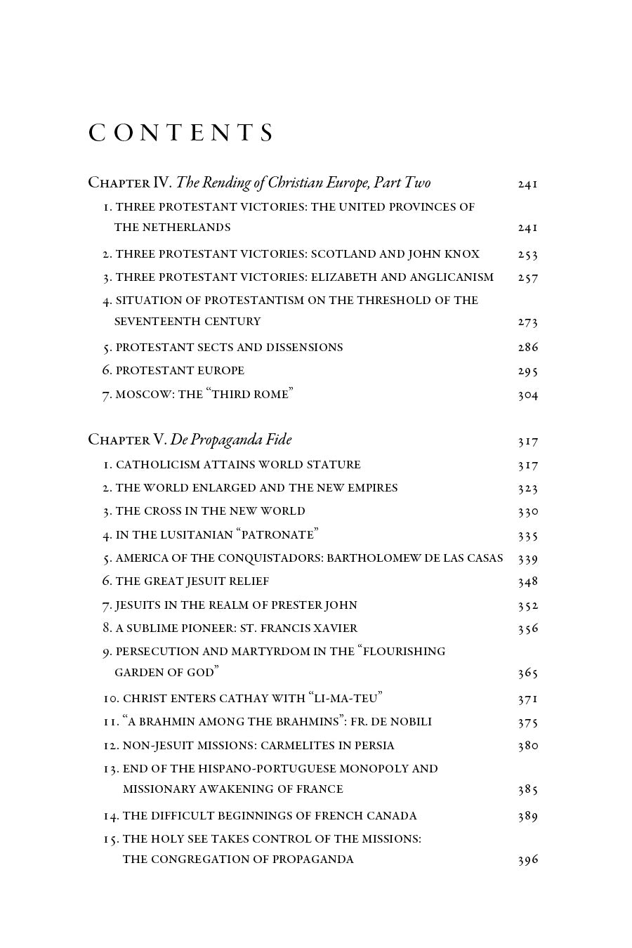 An Age of Renewal: The Catholic Reformation is the fifth installment in Henri Daniel-Rops’ magnificent History of the Church of Christ. This volume continues the foray into the “age of fanaticism,” during which Protestantism amassed victories in the Netherlands, Scotland, and Elizabethan England; offers a comprehensive account of De Propaganda Fide, the amazing missionary efforts of such men as St. Francis Xavier, Bartholomew de las Casas, and Matteo Ricci; and, lastly, presents the fruits of reform’s victories—the splendor of the new St. Peter’s and the successes of the post-Tridentine popes; the great “defenders of the faith,” Baronius and Bellarmine, and the exuberance of the Baroque; and the freshly-minted treasures in mysticism and spirituality bequeathed by St. John of the Cross, St. Teresa of Avila, and St. Francis de Sales, “the living embodiment of an era, the reward of three generations’ hopes and prayers.”