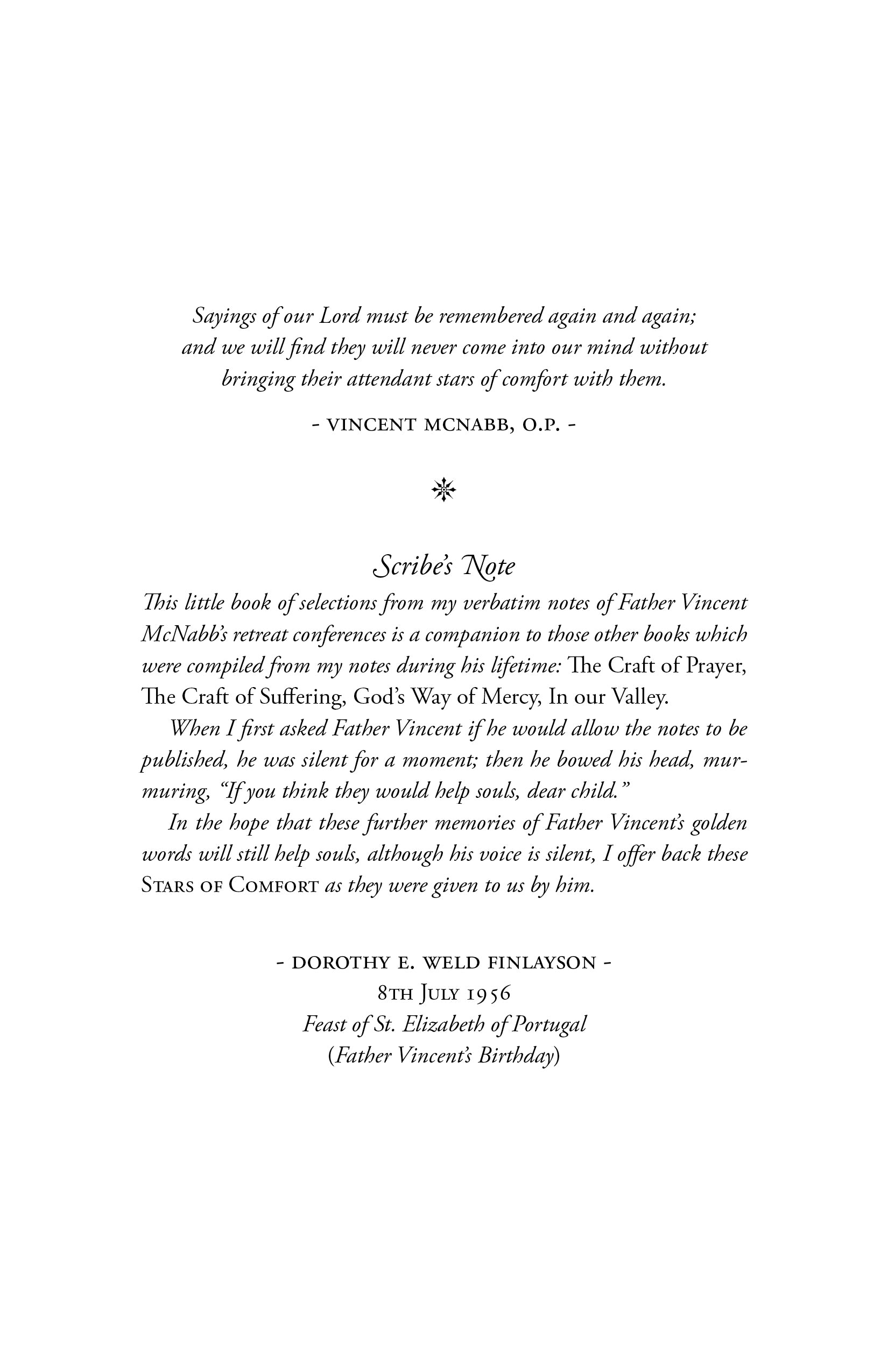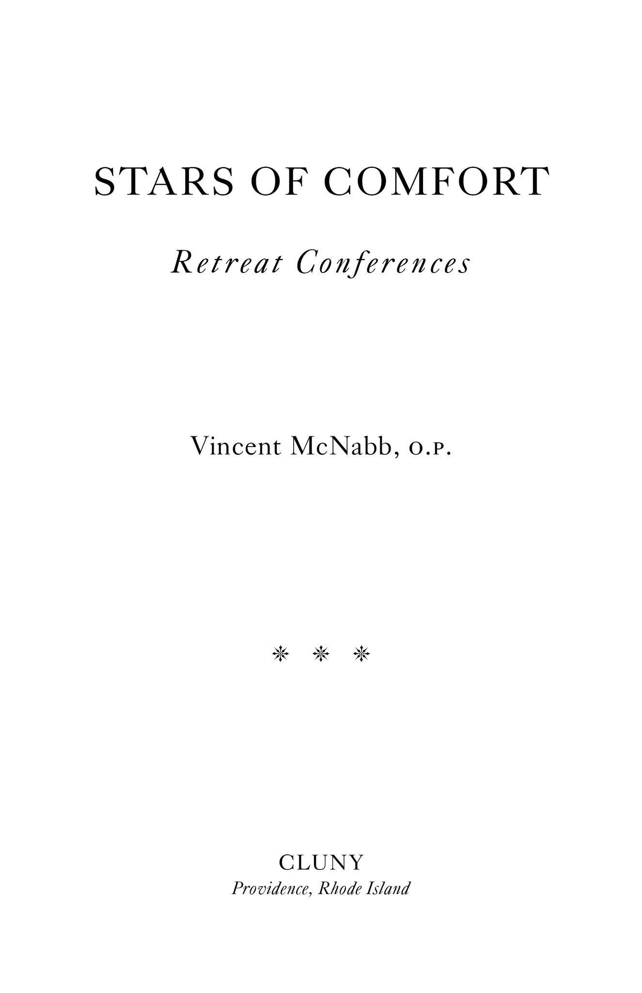 Stars of Comfort is ample evidence of this. Selected from verbatim notes of McNabb’s retreat conferences, these thirty-six addresses form an engaging study of the spiritual life, its principles and guiding lights, its ways and means.