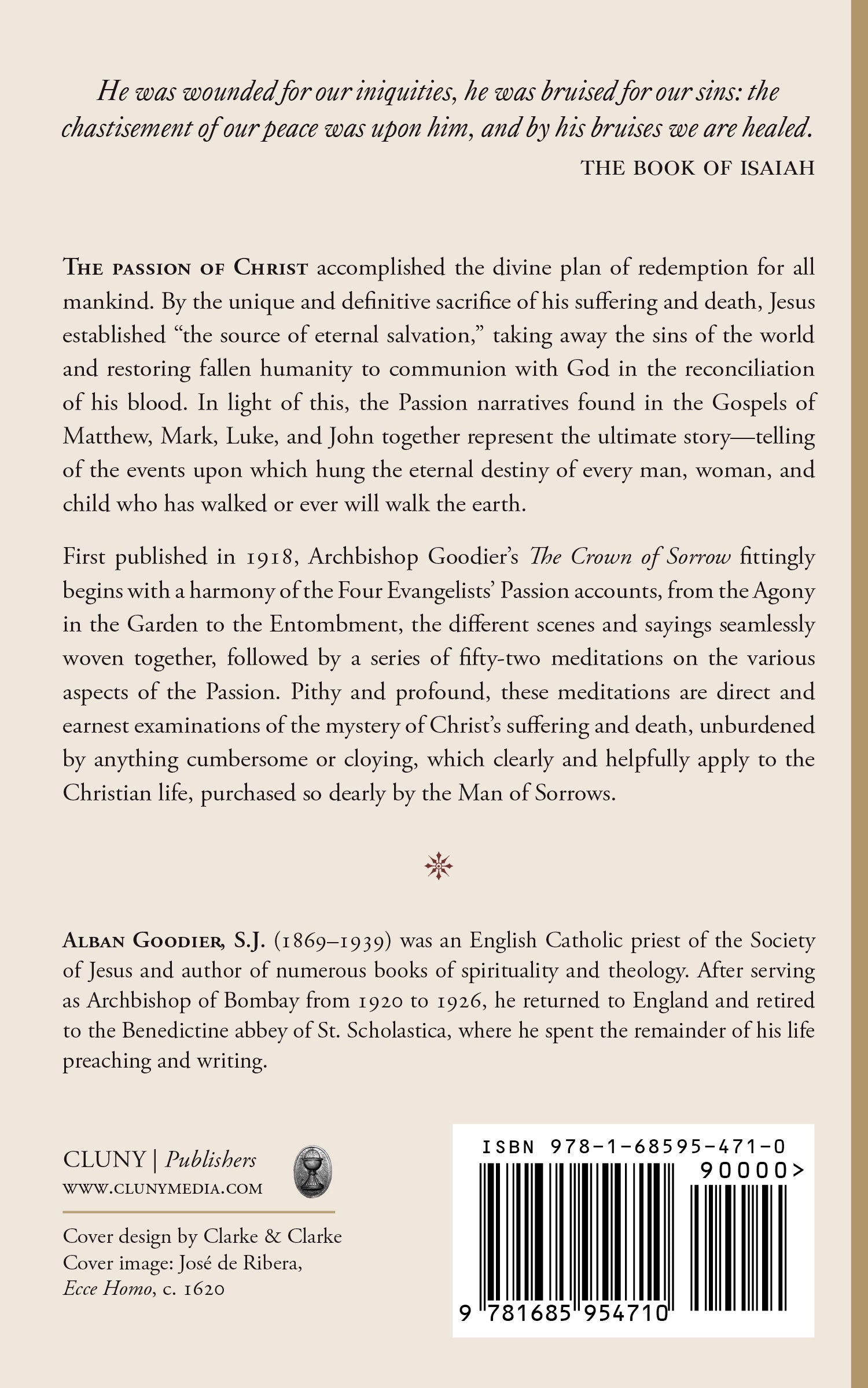 First published in 1918, Archbishop Goodier’s The Crown of Sorrow fittingly begins with a harmony of the Four Evangelists’ Passion accounts, from the Agony in the Garden to the Entombment, the different scenes and sayings seamlessly woven together, followed by a series of fifty-two meditations on the various aspects of the Passion. Pithy and profound, these meditations are direct and earnest examinations of the mystery of Christ’s suffering and death, unburdened by anything cumbersome or cloying, which clearly and helpfully apply to the Christian life, purchased so dearly by the Man of Sorrows.