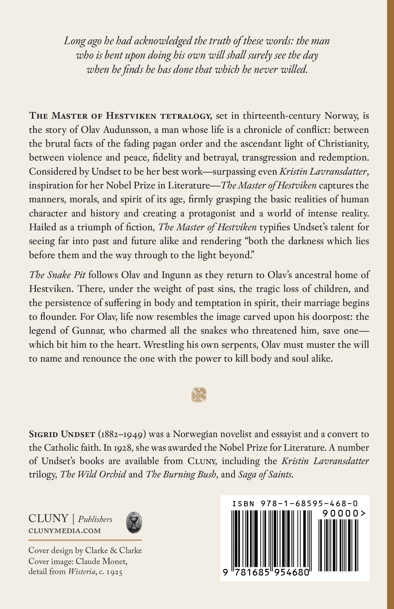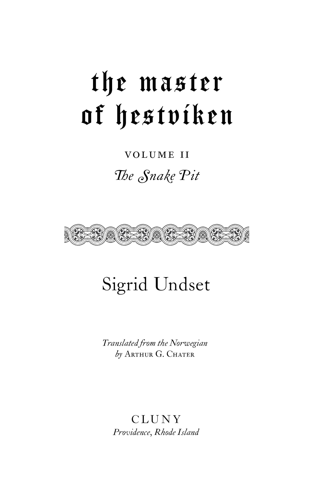 The Snake Pit follows Olav and Ingunn as they return to Olav’s ancestral home of Hestviken. There, under the weight of past sins, the tragic loss of children, and the persistence of suffering in body and temptation in spirit, their marriage begins to flounder. For Olav, life now resembles the image carved upon his doorpost: the legend of Gunnar, who charmed all the snakes who threatened him, save one―which bit him to the heart. Wrestling his own serpents, Olav must muster the will to name and renounce the one with the power to kill body and soul alike.