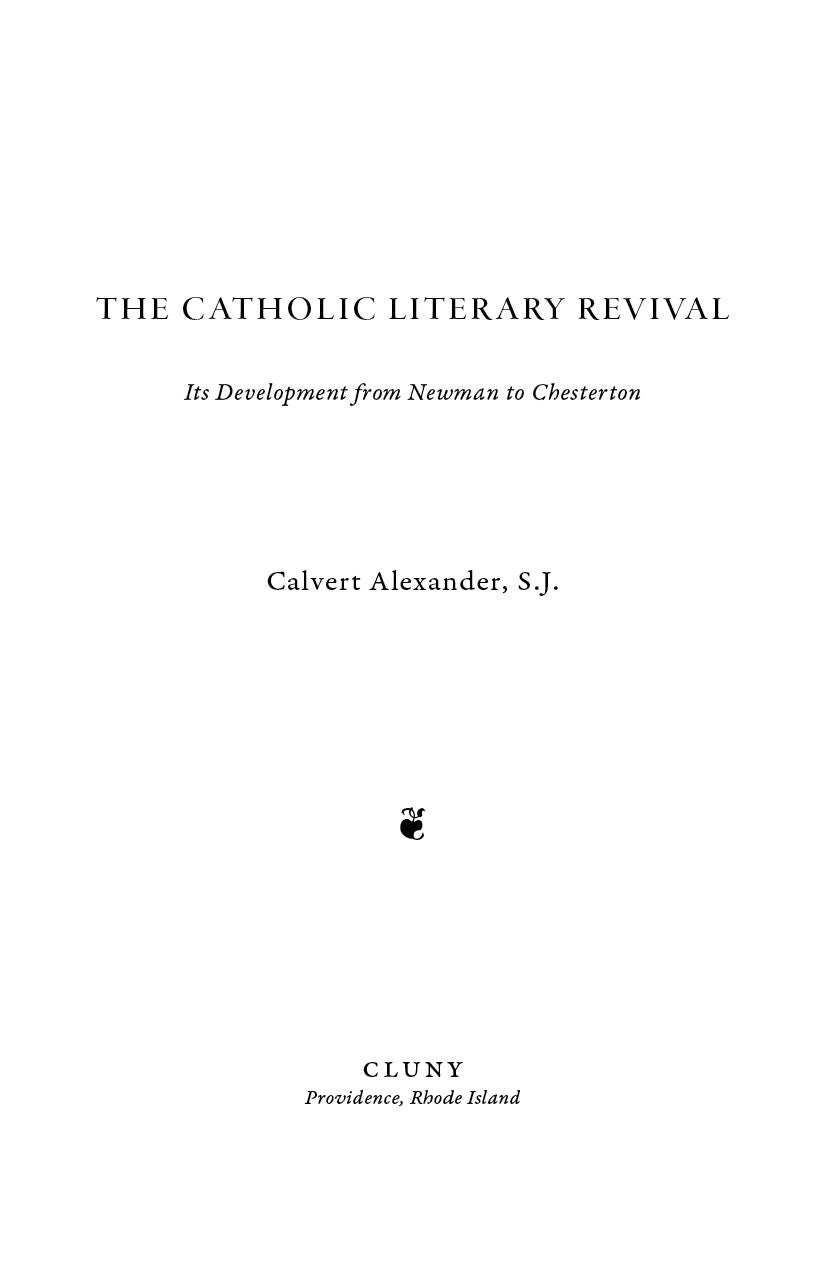 Christopher Dawson once diagnosed the modern decline in faith as due “not so much to a change of belief as to a change of attention—a turning away of the mind from spiritual to temporal things.” In this sweeping treatment of Catholic literary history, Calvert Alexander, S.J., traces the development of Catholic literature and enumerates its effects in returning the mind to the spiritual order. Focusing on the output of English-speaking countries, but also including other, continental contributions, Alexander attributes three stages to the revival of Catholic literature: the Victorian phase (1845 to 1890); the middle phase (the 1890s to World War I); and the contemporary phase (World War I to 1935).
